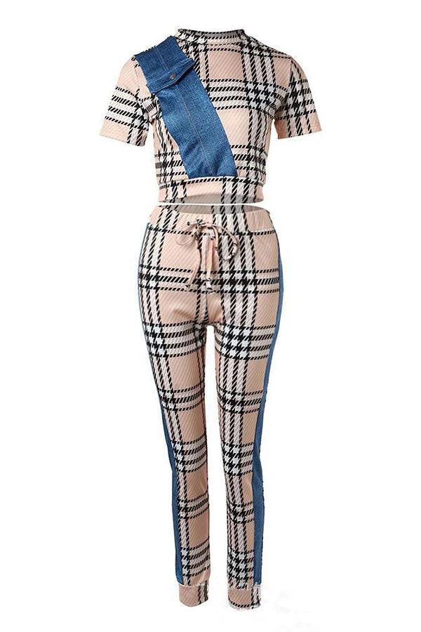 Plaid Patchwork Classic Drawstring Pant Suit
