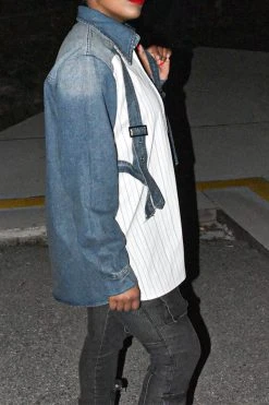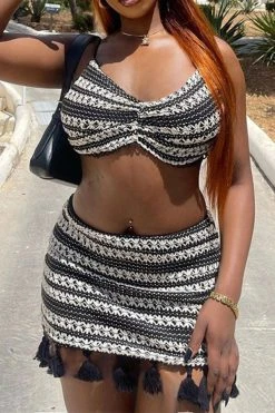 Striped Hooded Hot Strappy Knitted Skirt Suit (Three Pieces)